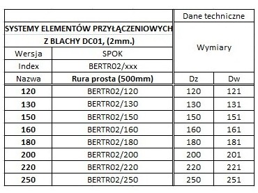 Metalowe systemy elementów przyłączeniowych z blachy czarnej wykonane są z blach stalowych DC01 o grubosci 1,0; 1,2; 1,5; 1,8; 2,0 [mm].