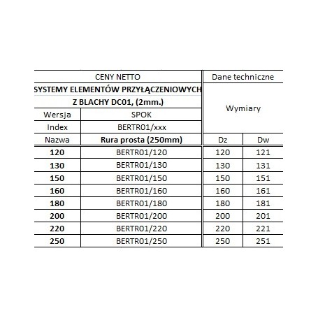 Metalowe systemy elementów przyłączeniowych z blachy czarnej wykonane są z blach stalowych DC01 o grubosci 1,0; 1,2; 1,5; 1,8; 2,0 [mm].